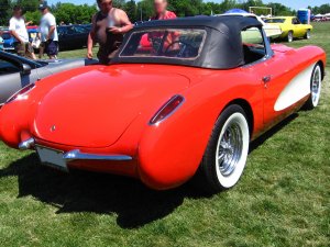 DescriptionThe Chevrolet Corvette was introduced in 1953 as Chevy's first two-seater sports car. The original generation of the Corvette, which lasted from 1953 to 1962, is now referred to as the C1. The 1956-57 Corvettes were a major styling change over the 1953-55 Corvettes. This included different front fenders with protruding headlights, a recessed side cove which was optionally painted a different color, and tapered rear fenders with recessed tail lights. While the 56 and 57 Corvettes were virtually identical on the exterior, 1957 saw some significant changes, performance wise. Displacement of the small block Chevy V-8 engine was enlarged from 265 to 283 cubic inches. It was also the first year that a 4-speed manual transmission was available. But most significantly, 1957 saw the introduction of the now famous fuel-injected engine. With 283 cubic inches, it was rated at 283 horsepower with solid lifters and 250 hp with hydraulic lifters. 1957 was also the last year of single headlights. 1957 Corvette Key DifferencesFront fenders with protruding single headlights (not covered with a grill), and tapered rear fenders with recessed tail lights set the '56 and '57 Corvette apart from other years. Key differences of the 1957 Corvette include the 283 cu in engine, available fuel injection, and the optional four-speed manual. Similar YearsThe 1956 and 1957 Corvettes are virtually the same on the exterior. | |