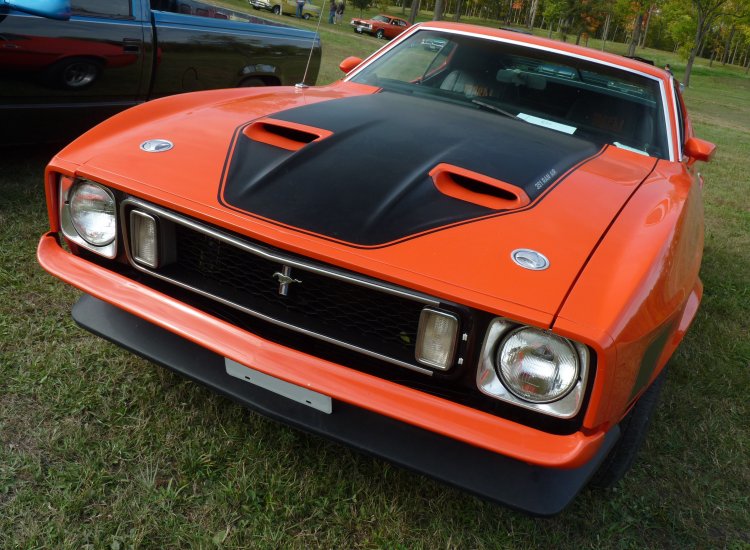 Description1973 was the last year for the first generation Mustangs. They still came in the same three body styles, coupe, sportsroof, and convertible. 1973 would be the last year for a convertible Mustang until 1983. Horsepower ratings again declined as manufacturers struggled to meet new pollution standards. The top 351 Cobra Jet engine this year was rated at 266 hp. For 1973, the front signal lights were vertical instead of horizontal, and a new, larger body-colored urethane bumper was used on all Mustangs. Also, the headlights were surrounded by a square bezel, either chrome or black. The rear panel had a black grained insert on regular Mustangs or a honeycomb panel on Mach 1s. The side stripe on the Mach 1 was now straight, wider, and placed lower on the car, with the "Mach 1" name on the rear fenders instead of the front fenders. The 1971-72 style Mach 1 side stripes are often seen on 1973 Mustangs, however. 1973 Mustang Key Differences1973 Mustangs can be easily identified by their vertical signal lights in the front grill. '73 Mustangs also had body-colored front bumpers rather than the chrome ones used in '71 and '72 (All Mach 1s were supposed to have body colored bumpers from 1971-73, however many can be seen today with chrome bumpers.) Similar Years1971 to 1973 Mustangs all had the same body style. 1973 Mustangs had different front signal lights and a different front bumper than the 1971 and 1972 models. | |